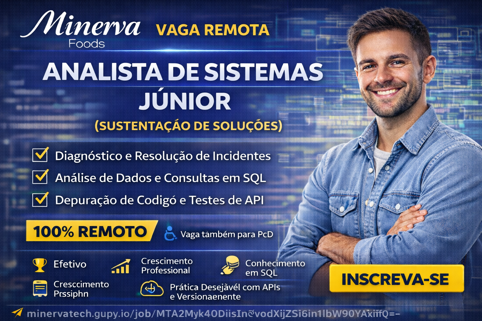 O setor de tecnologia corporativa tem se tornado cada vez mais estratégico para empresas globais, especialmente quando falamos de operações críticas e cadeias produtivas complexas. Nesse cenário, a Minerva Foods abre inscrições para a vaga de Analista de Sistemas Júnior – Sustentação de Soluções, com modelo 100% remoto, contratação efetiva e inclusão de pessoas com deficiência (PcD).