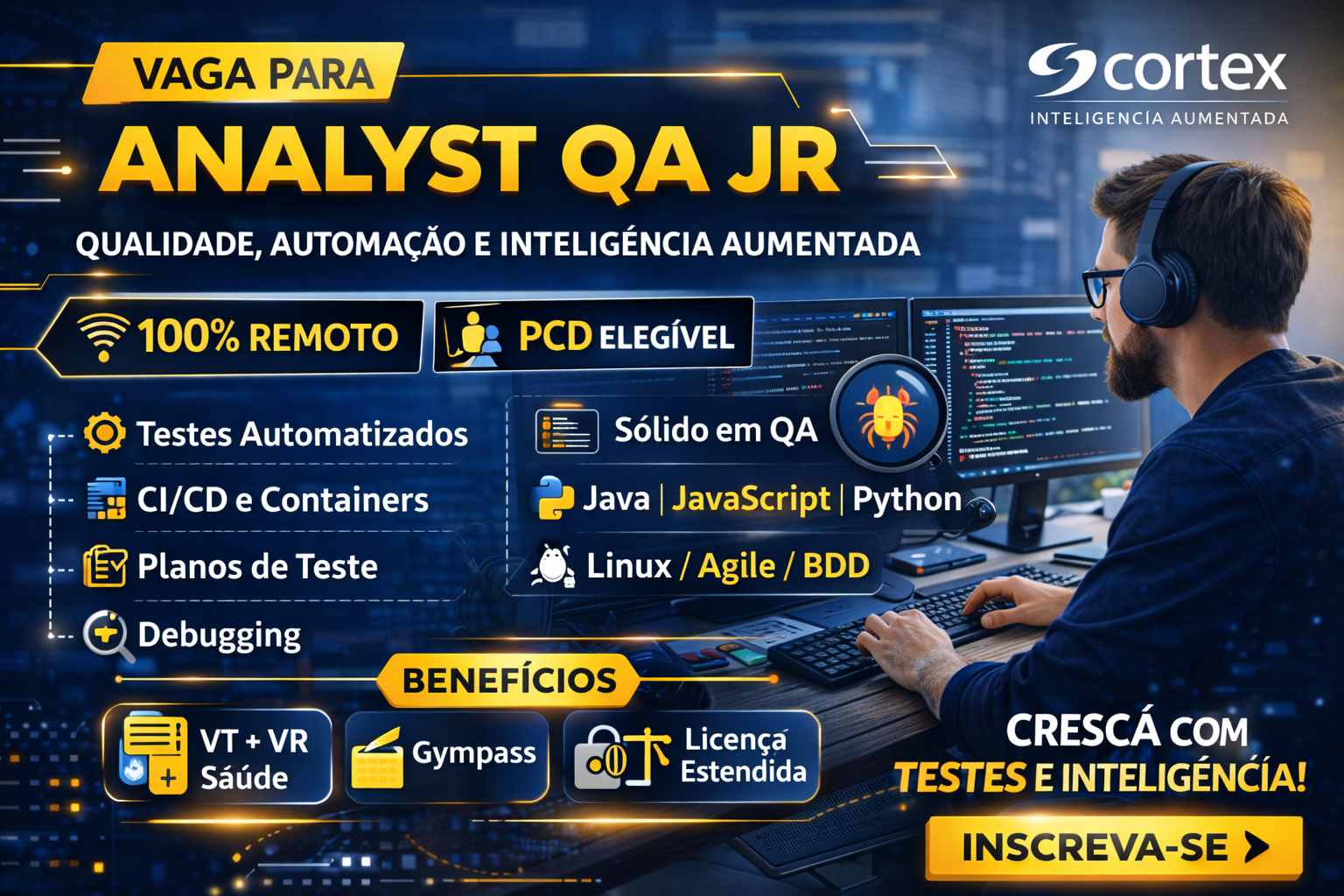 👉 Inscreva-se agora: ANALYST QA JR NA CORTEX