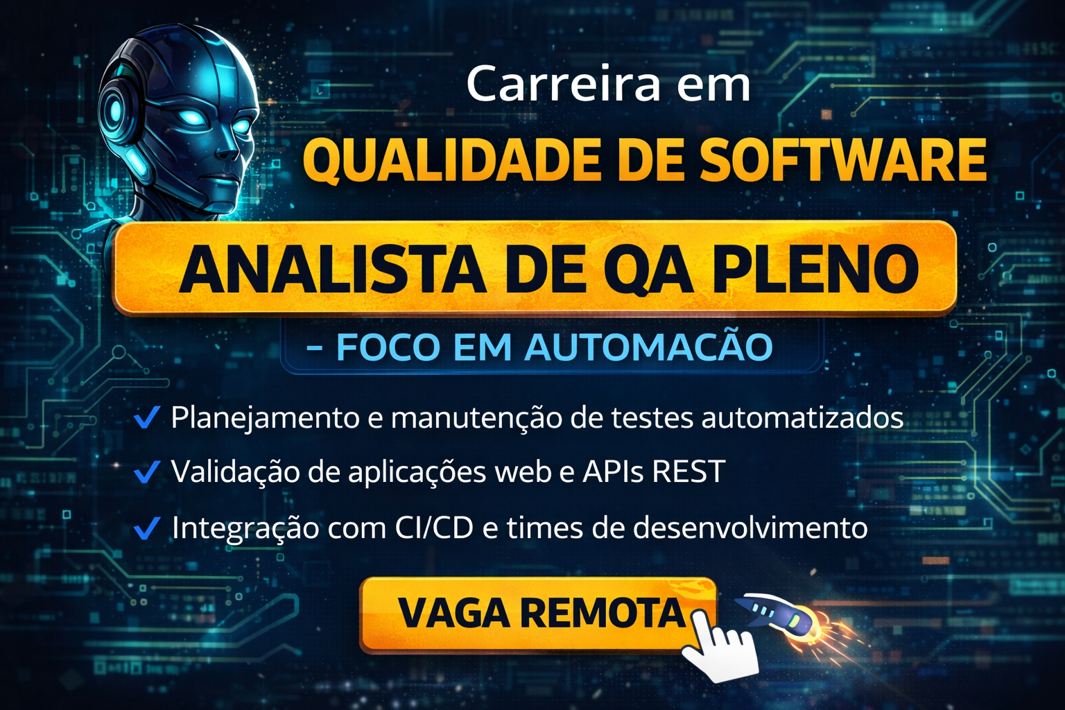 Se você possui experiência em testes automatizados, APIs e frameworks de automação, essa oportunidade pode ser ideal para sua carreira.