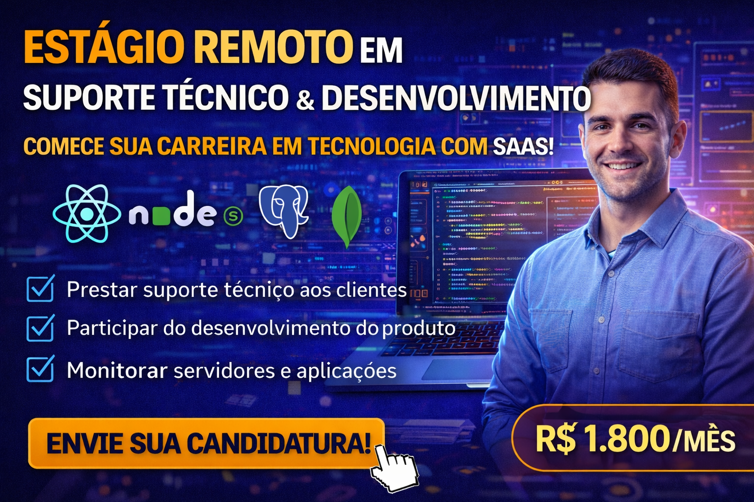 Nesse cenário, surge uma oportunidade de Estágio em Suporte Técnico & Desenvolvimento na empresa Infonova, com atuação 100% remota. A vaga oferece contato direto com clientes, participação no desenvolvimento de sistemas SaaS e experiência com tecnologias modernas utilizadas no mercado.