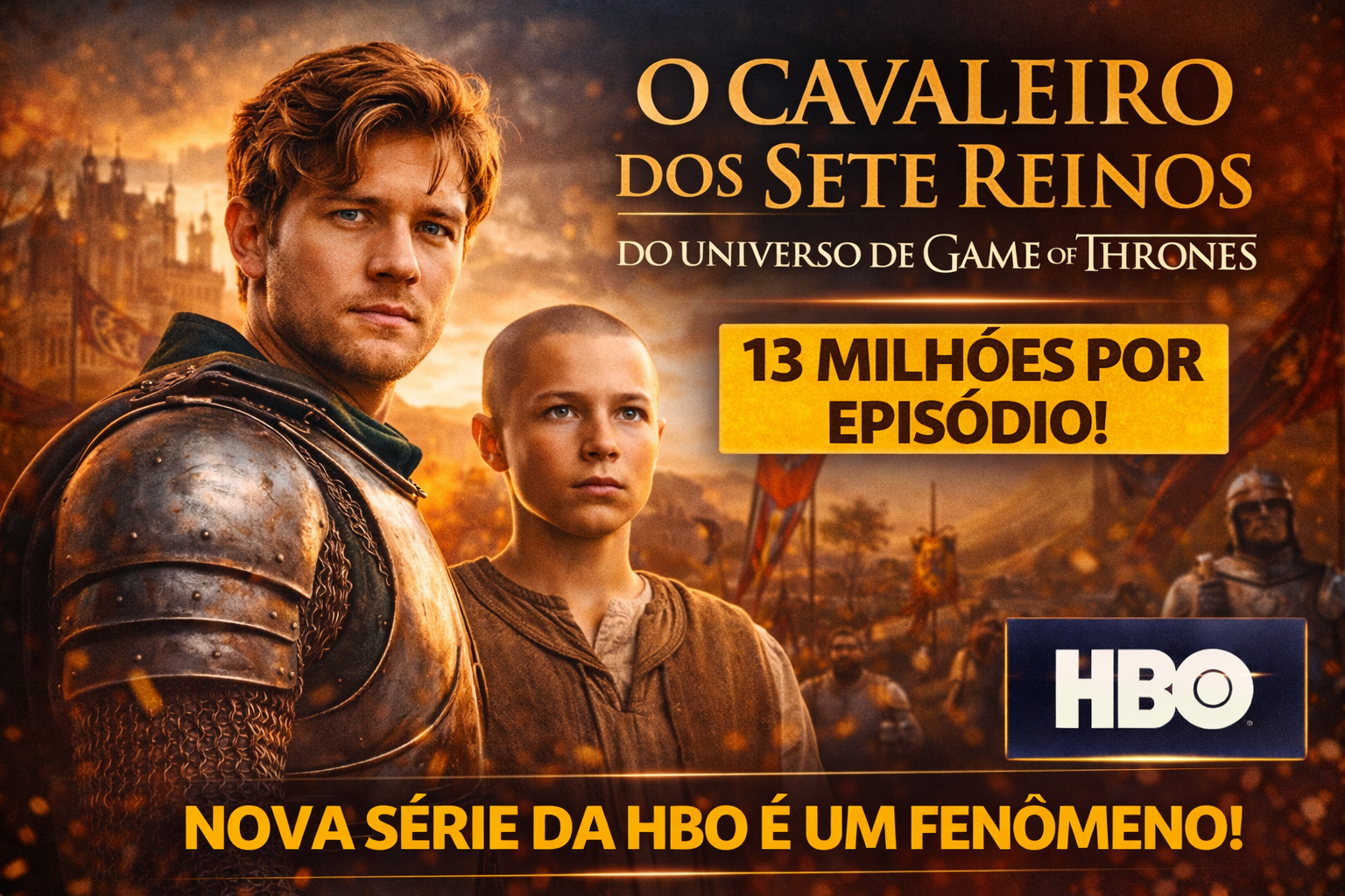 A expansão do universo criado por George R. R. Martin ganha força a cada semana. A HBO confirmou que O Cavaleiro dos Sete Reinos já se aproxima da marca de 13 milhões de espectadores por episódio nos Estados Unidos, considerando audiência linear e streaming. Além disso, a produção avança rapidamente para se tornar a terceira maior estreia da história do HBO Max.
