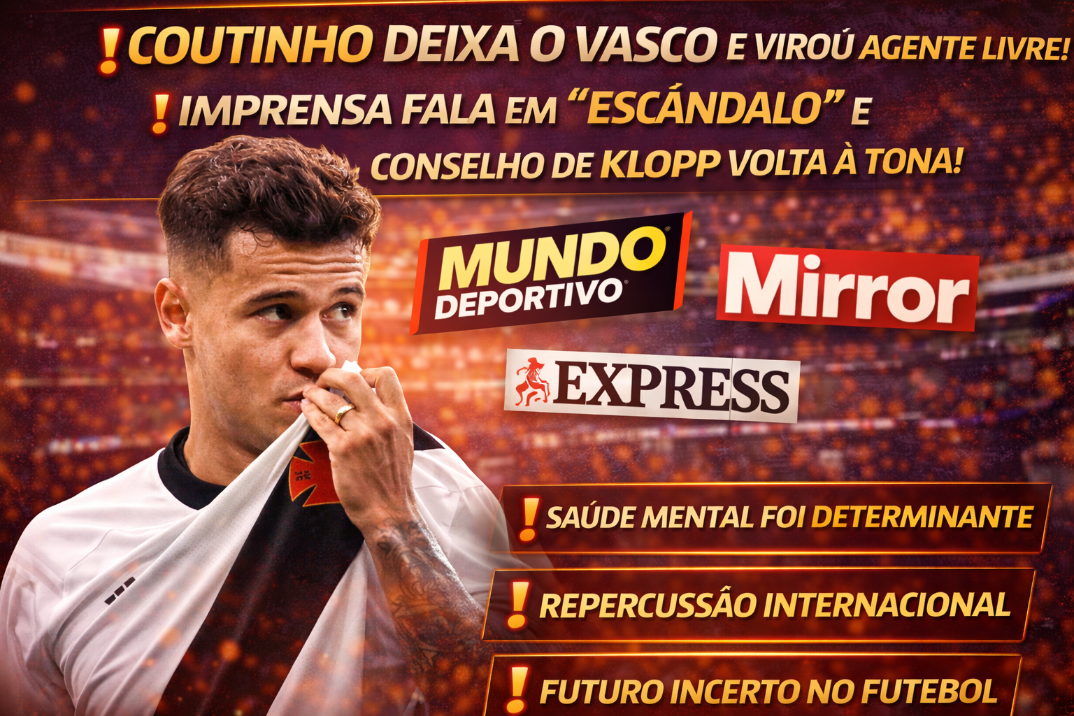A saída de Philippe Coutinho do Vasco movimentou não apenas o futebol brasileiro, mas também a imprensa internacional. O meia, que já vestiu as camisas de Barcelona, Liverpool, Inter de Milão e Bayern de Munique, pediu a rescisão contratual alegando desgaste emocional e mental. Enquanto isso, veículos europeus classificaram o episódio como “escândalo”, e o antigo conselho de Jürgen Klopp voltou a circular nas redes.